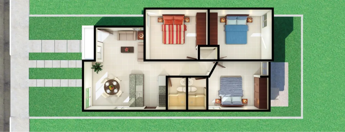 El prototipo Lucian es una casa que destaca por su diseño funcional, distribución inteligente y amplitud de terreno. Ubicada en el desarrollo Marsella III, esta vivienda está pensada para brindar comodidad, privacidad y eficiencia, ideal para familias que buscan una propiedad accesible y bien ubicada en Playa del Carmen. 📐 Dimensiones: - Construcción: 94.05 m² - Terreno: 8.20 m x 22.00 m - Superficie total: 180.40 m² 🏠 Distribución arquitectónica: - Sala y comedor en concepto abierto, con excelente iluminación natural - Cocina funcional, lista para integrar equipamiento personalizado - Tres recámaras, incluyendo una principal con baño completo y espacio para closet vestidor - Dos baños completos, distribuidos para comodidad familiar - Área de estacionamiento - Patio posterior amplio, ideal para jardín, terraza 🌿 Ventajas adicionales: - Terreno excedente que permite personalización exterior - Ubicación dentro de una privada con acceso controlado, en una zona de alta plusvalía Lucian en Marsella III representa una excelente opción para vivir con tranquilidad, funcionalidad y cercanía a servicios esenciales en Playa del Carmen. Un modelo que equilibra espacio, diseño y potencial de inversión.